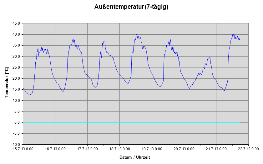 Die erste Grafik zeigt den Verlauf des Temperatur während der letzten 7 Tage (Stand: 21.07.13 -18°°).