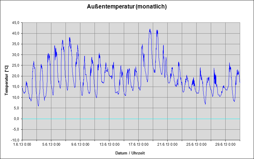 Die dritte Grafik zeigt den Verlauf der Temperatur für den ganzen Monat Juni 2013.